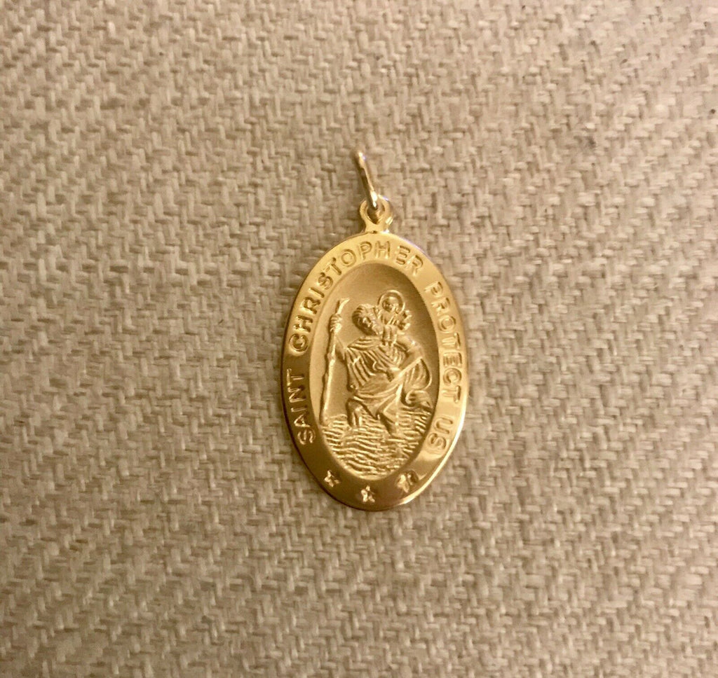 14K Pretty Yellow Gold Medal Oval Pendant Saint Christopher Italy 4 Grams