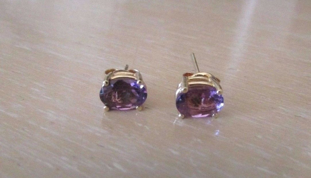 14K Pretty Yellow Gold Oval Amethyst Stud Earrings 1.3 Grams 1.48 Cts